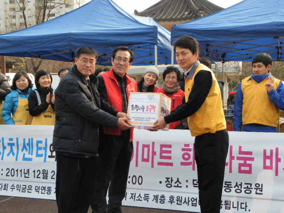 URL복사 기사공유하기 스크랩 프린트 메일보내기 글씨키우기 순천시 덕연동 주민자치위원회와 이마트 순천점은 지난 20일 연향제1근린공원에서 사랑의 바자회를 열었다. 이마트 순천점에서 도서, 가공식품, 음료, 과자 등을 준비하고 덕연동 주민자치위원회에서 홍보와 판매를 맡았다. 이날 바자회 수익금은 77만6천930원으로 덕연동 독거노인과 초,중,고 학생들에게 지원될 예정이다. [마이경제 뉴스팀/소비자가 만드는 신문=정덕기 기자] 저작권자 © 소비자가 만드는 신문 무단전재 및 재배포 금지 정덕기 기자 다른기사 보기 URL복사 기사공유하기 주요기사 정길호 OK저축은행 대표, 6연임 사실상 확정...건전성 개선 과제 금감원, 보험사 허위·과장 광고 범람...무관용 원칙에 따라 엄정 제재 신한금융 회추위원장 “진옥동 회장, ‘신한 정신’ 강조... 도전과 혁신도 이어갈 것” 신한금융 회장에 진옥동 현 회장 최종 후보 선정... 사실상 연임 확정 보람그룹, '보람그룹배 파크골프대회' 8일 개최...건강한 여가문화 조성 삼성전자, '삼성 인테리어핏 설치서비스' 5일 개시…가구장 철거부터 시공까지