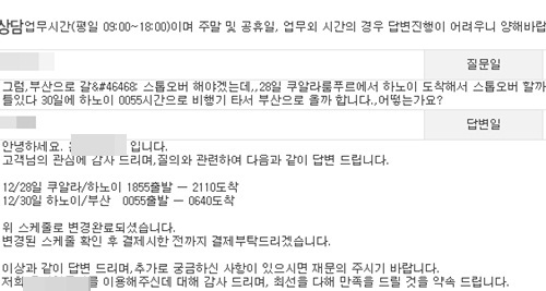 귀국 도중 베트남 하노이에서 이틀간 스탑오버(단기체류)할 생각이었던 배 씨. 그는 여행사 측에 “28일 쿠알라룸푸르에서 하노이에 도착해서 스탑오버하고 싶다. 이틀 후 30일에 하노이 00시55분 비행기로 부산으로 오고싶다”고 문의했다.