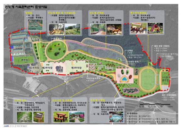 진도개 테마파크는 진도군·읍 동외리 278번지 일원(56,474㎡)에 조성하는 사업으로 진도개 사육관리센터와 친환경 사육장, 진도개 역사관(홍보관) 리모델링 사업이 추진된다.