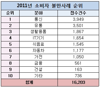 통신 서비스는 올해도 역시 소비자 불만 1위의 불명예를 안았다.