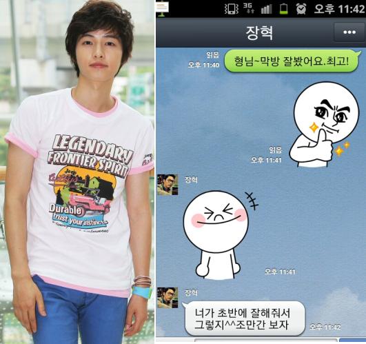 배우 송중기가 장혁과 나눈 메신저 대화 내용을 공개했다.