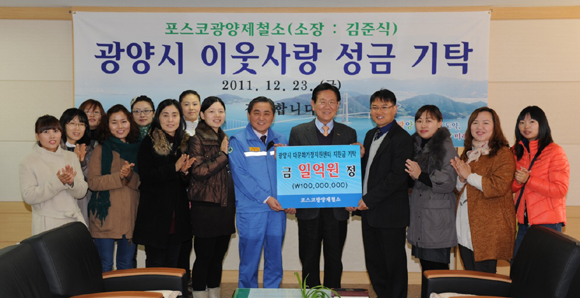 포스코 광양제철소(소장 김준식)는 23일 광양시청에서 이성웅 광양시장과 이재호 광양시 다문화센터장에게 성금 2억원을 기탁했다고 밝혔다.