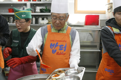 동아제약 강신호 회장은 팔순이 훌쩍 넘은 나이임에도 불구 지난 15일 임직원 50여명과 함께 서울 답십리에서 급식 봉사를 실시했다. 7년째 봉사활동을 이어가고 있는 강 회장은 자원봉사자들과 함께 600인분의 밥과 반찬을 준비해 직접 배식했다.