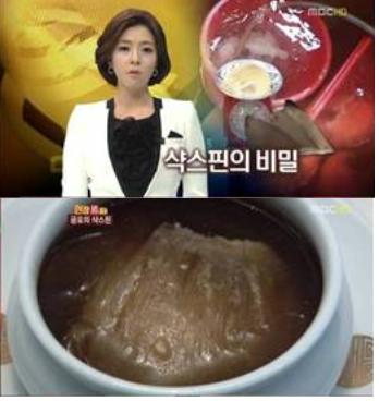 이는 중국의 한 샥스핀 가공업체에서 샥스핀의 질량을 불리기 위해 규산나트륨을 물에 희석시킨 뒤 샥스핀을 불려 유통했다. 규산나트륨은 주로 접착제, 합성세제, 제습제에 쓰이는 화학물질이다. (사진-MBC 뉴스 캡처)