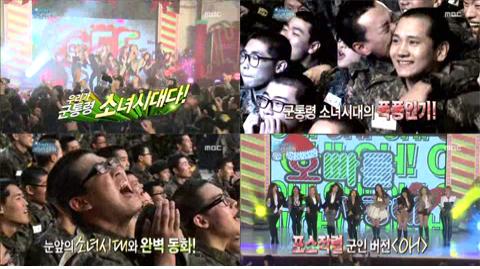 연말 특별 정신 교육으로 위장한 상태에서 소녀시대가 깜짝 등장하자 군인들은 우레와 같은 함성으로 소녀시대를 맞이했다.