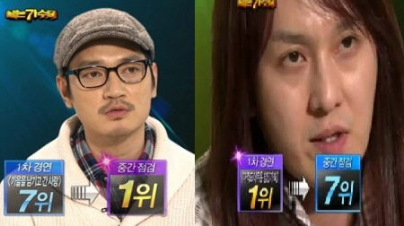 5위는 박정현의 ‘P.S I LOVE YOU’를 선택한 거미가 올랐다. 6위 박완규는 임재범의 ‘고해’를 선택했다. 7위는 김경호가 백지영의 ‘사랑안해’를 선택했지만 결과가 좋지 않았다.(사진=방송캡처)