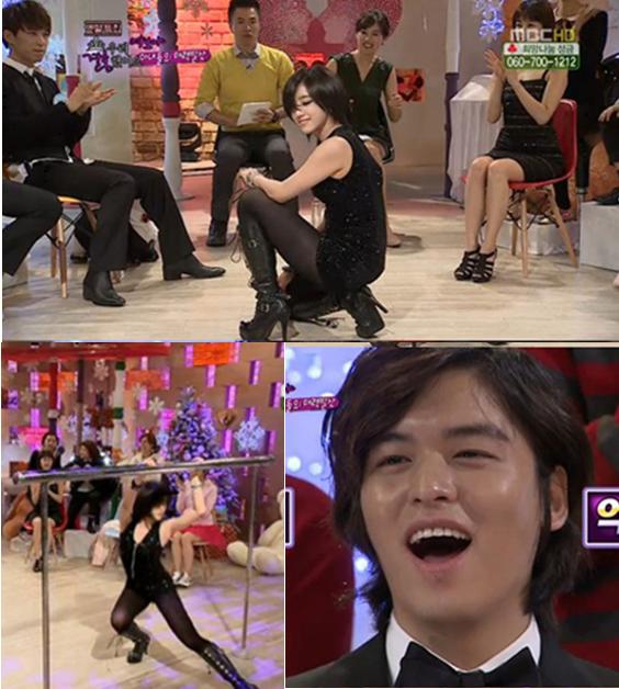 이날 방송에서 함은정은 몸매 라인이 드러나는 검은 색 의상을 입고 섹시한 봉 춤을 선보여 남성 출연진들의 시선을 한 몸에 받았다.