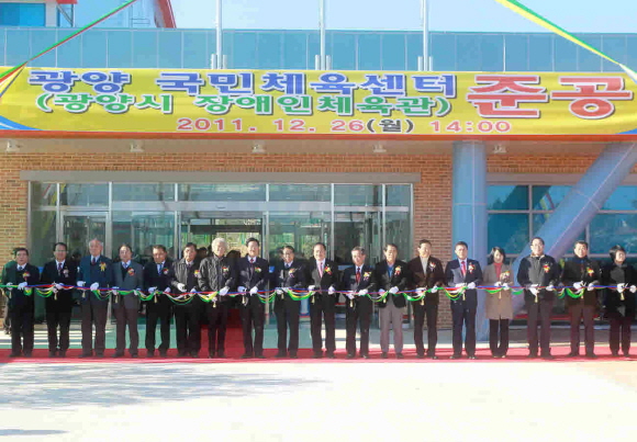 광양시 7천여명의 등록 장애인의 숙원사업을 해결하고 스포츠 인프라 구축을 통한 도시 경쟁력 강화 및 생활체육 수요를 해소하기 위해 건립한 광양시 장애인체육관(시설명 : 광양 국민체육센터)이 지난 12월 26일 장애인체육관 다목적체육관동에서 준공식을 가졌다.