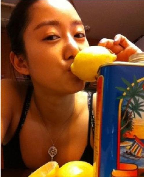 공개된 사진에서 전혜빈은 민소매 차림으로 레몬을 물고 있다.