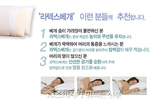 평소 목이 아팠을 뿐만 아니라 주변사람들로부터 일자목이라는 얘기를 듣던 차에 편안한 숙면에 도움이 될까 싶어 라텍스 베개를 13만원 가량에 구입했다.