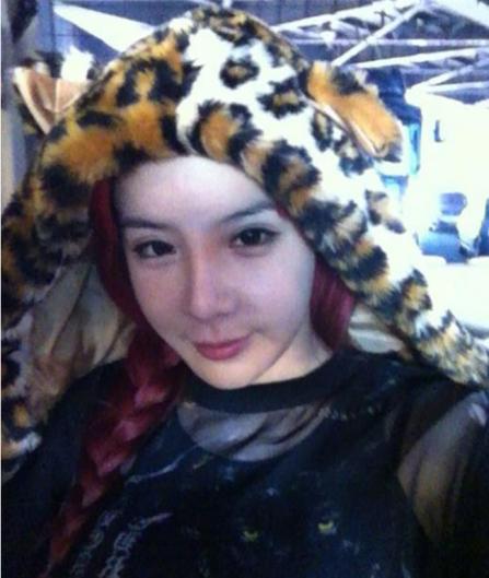 2NE1 박봄이 호피무늬 모자를 쓰고 민낯 셀카를 찍었다.