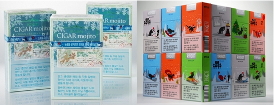 국내 담배시장 점유율 60%를 차지하고 있는 KT&G는 지난 10월 ‘오렌지, 블루, 그레이, 그린’ 네 가지의 강렬한 색상을 적용한 새로운 ‘4색(色) 레종’을 출시한데 이어 이달에만 눈에 띄는 디자인의 겨울 한정판 담배인 ‘레종 윈터스페셜’과 ‘보헴시가 모히또 스노우팩’을 잇달아 내놓으며 흡연자들을 유혹하고 있다.