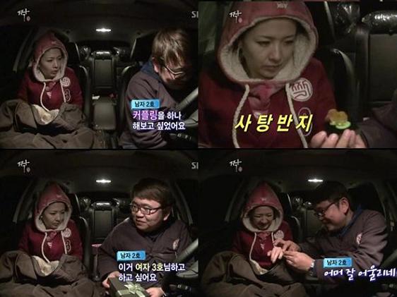 여자3호는솔직하게 "굉장히 부담스럽다"고 답했으나 밀어부치는 남자2호가 연 반지는 알고보니 사탕반지였다.