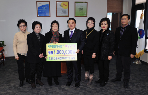 URL복사 기사공유하기 스크랩 프린트 메일보내기 글씨키우기 김종식 광주시 서구청장은 최근 양동시장 부녀회원등이 마련한 서구민 한가족 돕기 후원금 100만원을 기탁 받아 전달식을 갖고 힘들고 어려운 사람들이 희망을 가질 수 있도록 항상 관심을 가져 줄 것을 강조했다.[마이경제 뉴스팀/소비자가 민드는 신문=노광배 기자] 저작권자 © 소비자가 만드는 신문 무단전재 및 재배포 금지 노광배 기자 다른기사 보기 URL복사 기사공유하기 주요기사 쿠팡 개인정보 유출 피해 막으려고 카드정보 삭제했다가 '와우 멤버십' 해지? NH투자증권, 영등포 쪽방촌에 연탄 2000장·생필품 전달 풀무원, 업계 최초 18톤급 전기트럭 물류 현장 투입...1톤급 소형 전기트럭 15대 도입 예정 놀이의발견, 31일까지 초특가 기획전 ‘SUPER 놀딜’ 진행…숙박·레저 총 8만 원 쿠폰 제공 "MZ에 한 발 더"...오텍캐리어, 해방촌서 ‘캐리인더시티 시즌3’ 진행…로컬 매장과 상생 고장 원인 못찾아 서비스센터 들락날락...반복 수리 피해는 소비자 몫