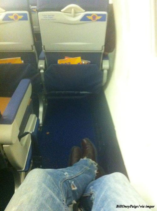 이 승객은 운 좋게도 앞자리가 텅 비어있어 다리를 쭉 뻗고 편안한 비행을 즐길 수 있었다.