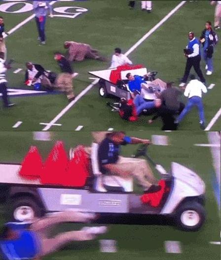 최근 한 온라인 커뮤니티 게시판에는 ‘주인님 어서 타세요’라는 제목으로 한 미식축구 경기장에서 카트 때문에 일어난 소동을 담은 동영상이 게재됐다.