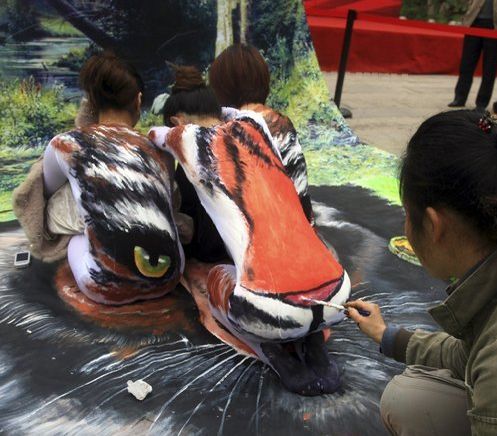 3D 보디 페인팅 그림은 중국 동남부 푸젠성에서 한 화가가 3명의 모델 등에 호랑이 그림을 그려 입체감을 나타낸 것으로 호랑이의 얼굴부분까지 디테일하게 나타내어 찬사를 받았다.