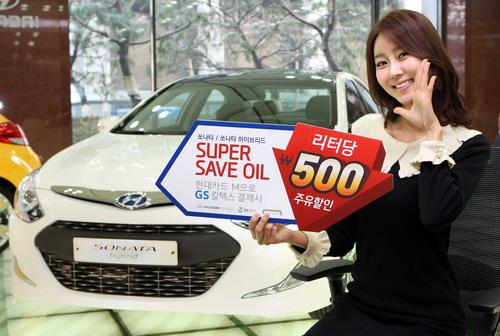 현대카드의 '세이브 오토' 프로그램을 이용해 쏘나타나 쏘나타 하이브리드를 구입한 개인 및 개인사업자가 GS칼텍스 주유소에서 현대카드M으로 결제하면 6개월간 총 120만원 한도 내에서 ℓ당 500원(LPG는 300원)을 할인해 준다.
