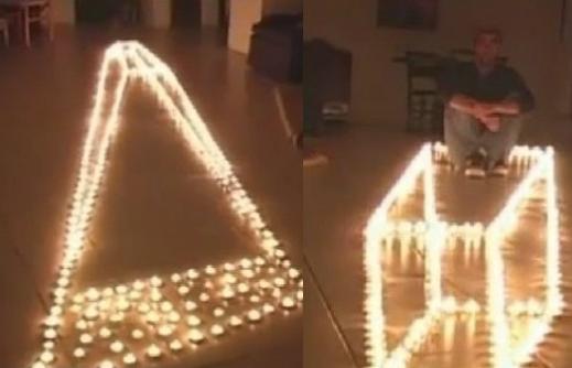영상 마지막에는 상자 모양으로 바뀐 초 위에 한 남성이 올라가 있는 듯한 착시 현상을 일으키며 신기함을 자아냈다.