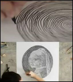 이 영상 속 한 남성은 하얀 도화지에 검정 사인펜으로 작은 원을 그리며 그림을 그리기 시작해 종이에서 사인펜을 한번도 떼지 않은 채 음영 조절만으로 한폭의 인물화를 완성했다.