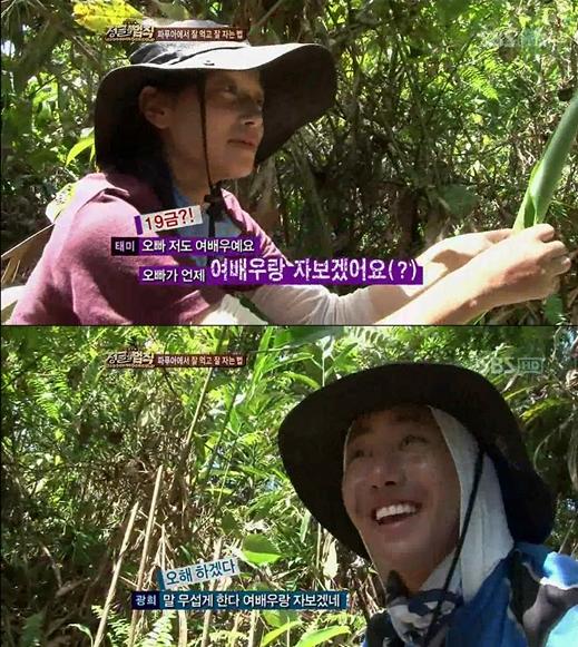 지난 6일 방송된 '정글의 법칙'에서는 파푸아에 간 병만 족이 코로와이 족과 함께 생활하는 모습이 그려졌는데, 먹을거리를 구하러 나간 광희는 함께 있던 태미에게 "그때 언제야 나 처음 왔을 때 너 내 옆에 붙어 잤잖아. 정말 너 진짜 좋은 경험 한다"라고 말문을 열었다.