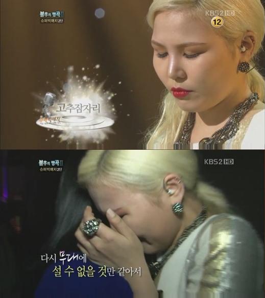 1월7일 방송된 KBS2 '자유선언 토요일-불후의 명곡2: 전설을 노래하다'에서는 지난주에 이어 아쉽게 우승을 놓친 명곡들로 펼쳐지는 '슈퍼 빅매치-불운의 명곡' 2라운드가 진행됐다.