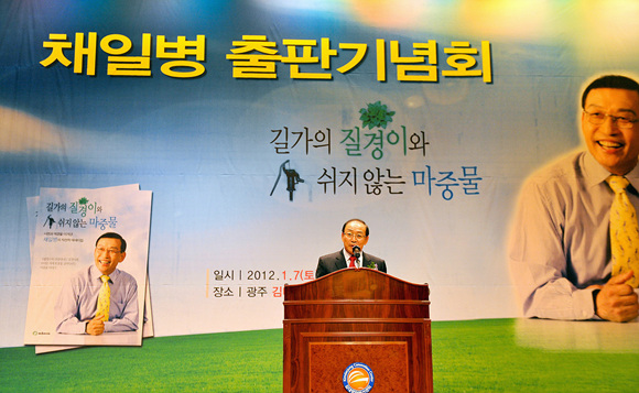 오는 4·11 총선에 광주 서구을 지역에 출마를 선언한 민주통합당(서구을) 채일병(65) 예비후보가 지난 7일 광주 서구 김대중컨벤션센터 컨벤션홀에서 출판기념회를 가졌다.