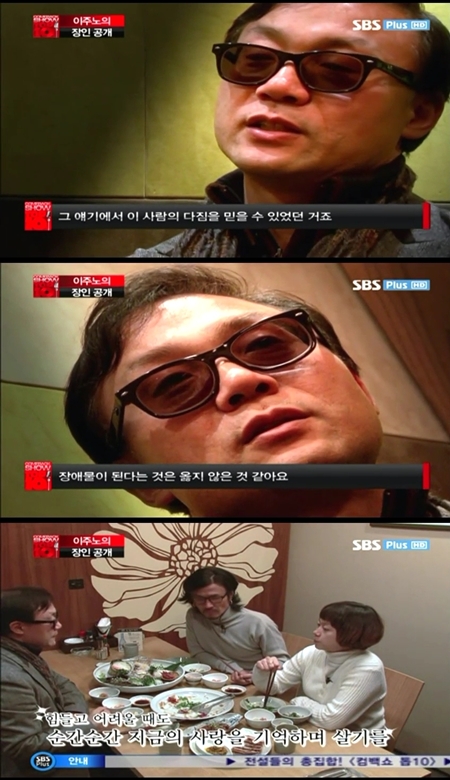 이어 "그 얘기에서 이 사람 다짐을 믿을 수 있었다. 산전수전 겪었기 때문에"라며 "그리고 나서 다시 떳떳하게 내 앞에서 얘기했을 때 대단하다고 느꼈다. 단지 나이로 인해 장애물 되는 건 옳지 않은 것 같다"고 이주노를 받아들일 수 있었던 이야기를 전했다. (사진-SBS 방송 캡처)