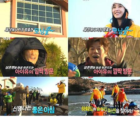 지난 8일 방송된 SBS ‘런닝맨’에서는 다음주 예고편이 방송됐다. 이 예고편에서는 가수 아이유가 런닝맨 멤버들을 깨우는 모습이 방송됐다.