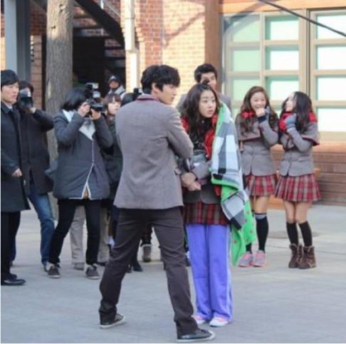 이 사진은 KBS 2TV 새 월화드라마 ‘드림하이2’ 촬영현장에서 찍힌 것으로 사진 속에는 정진운과 배우 강소라가 마주 서있는 모습이다.