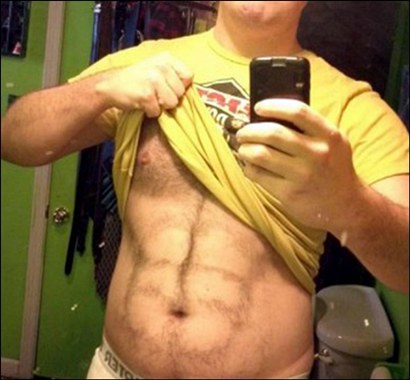 실제 사진 속 주인공은 배에 수북히 난 털을 정교하게 면도해 마치 탄탄한 복근 식스팩을 가진 것처럼 변신했다.
