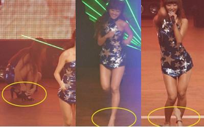 공개된 사진은 지난해 9월 이화여자대학교 행사에 참여한 씨스타의 모습으로 효린은 노래를 부르던 중 구두굽이 부러지자 신발을 벗어던진채 맨발로 남은 무대를 이어가 관객들의 큰 호응을 얻었다.