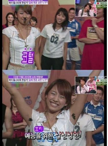 과거 영상에서 이효리는 한 예능 프로그램에 출연해 검은 테이프로 콧털을 만들어 웃음을 주고 있다. 특히 이 영상에서 이효리는 두 팔을 벌리며 가짜로 만든 겨털을 보여줘 주변을 폭소하게 만들고 있다. 이어 자신도 쑥스러운 지 눈웃음을 지어 보이며 매력을 과시했다.