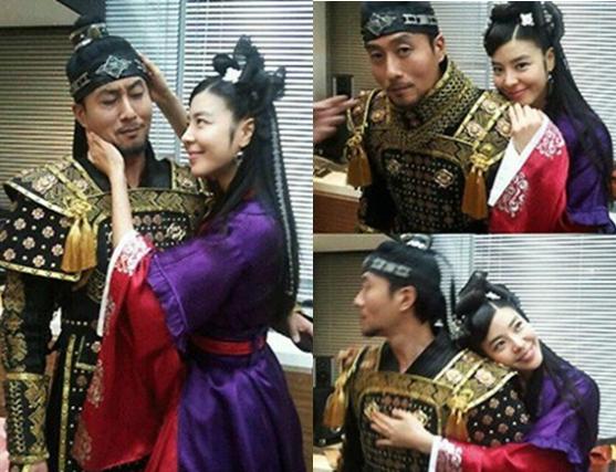 공개된 사진은 오는 2월 방송 예정인 MBC 특별기획 ‘무신’ 촬영 중 김규리가 나쁜 손 포즈로 김주혁에게 유혹의 손길을 보내고 있다.