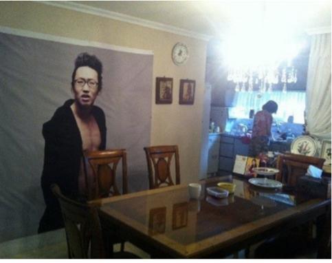 거실을 차지하고 있는 김경진의 사진은 상체가 드러나 복근을 자랑하고 있는 사진으로 김경진의 자신감이 드러난다.