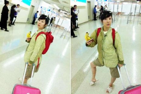 사유리가 엽기적인 공항패션을 선보여 화제를 모으고 있다.