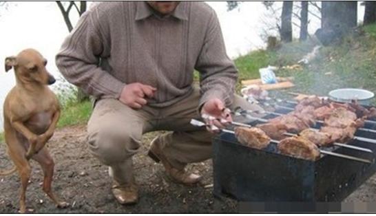 최근 인터넷에는 '배고픈 비굴 강아지'라는 제목으로 올라온 야외에서 고기를 굽는 주인 옆의 귀여운 강아지가 인기다.