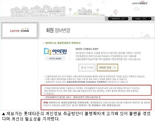 이에 대해 롯데타운 관계자는 “아이핀(식별ID) 은 개인정보의 유출 및 도용을 방지하고 본인확인 절차를 진행하기 위해 주민등록번호 대체수단으로 활용되고 있다”며 “롯데타운 사이트 회원정보변경 페이지에서는 이와 관련해 자세히 안내하고 있다”고 해명했다.