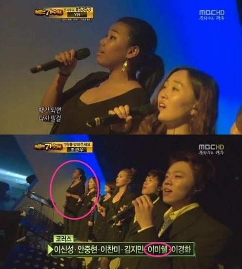 이미쉘의 사진은 이미쉘이 강사로 다니던 한 실용음악학원 블로그에는 '이미쉘 강사님 '나가수' 코러스 세션'이란 제목으로 이미쉘이 '나가수' 코너에 참여했던 인증샷이다.