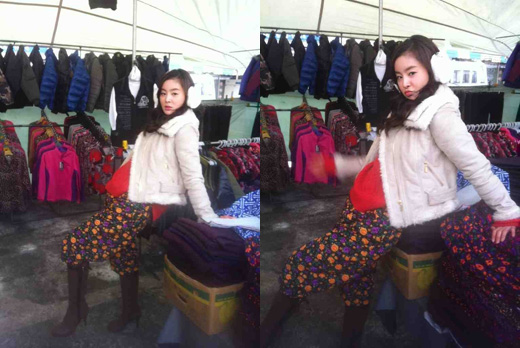 한혜린은 쉬는 시간에 몸빼바지를 입고 사진들을 찍은 것이다.