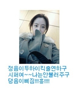 12일 배우 황정음이 자신의 미니홈피에 "정음이두 하이킥 출연하구 시퍼여~나는 안불러주구 뎡음이 삐짐! 흥!"이라는 글을 올려 화제가 되고 있다.