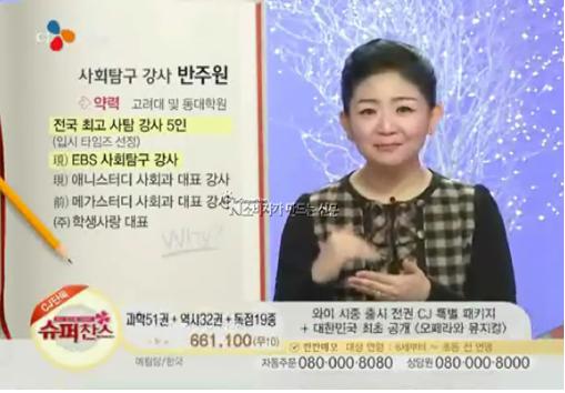 방송 자막에도 '과학 51권 + 역사 32권 + 독점 19종' 그 밑에 가격 나와 있고 옆에 '와이 시중 출시 전권 CJ 특별 패키지 + 대한민국 최초 공개 <오페라와 뮤지컬>' 이렇게 자막이 뜹니다.