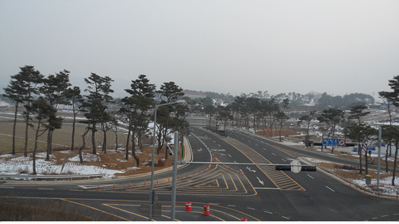 이번 명품 소나무길은 개발촉진지구지원사업의 일환으로 사업비 171억원을 투자해 총연장 1.54㎞, 폭 25m의 4차선 도로에 자전거도로 3.1㎞와 소나무 560주, 중앙분리대에 철쭉을 식재해 친환경 가로수길로 조성됐다.