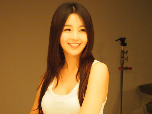 깔끔한 민소매티를 입고 있으며 긴 생머리에 미소를 지어 보이고 있어 청순미가 더욱 돋보인다.