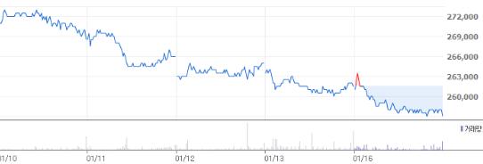 이마트 주가는 지난 3일 이후 계속해서 내리막로 들어서 순식간에 10%가량 빠졌다. 16일 이마트 주가는 전 거래일대비 4천500원(-1.72%)하락하며 52주 최저가인 25만7천원으로 장을 마감했다.
