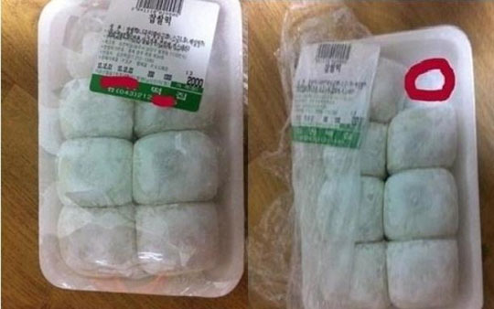보기에는 8개가 들어있는 것으로 보이지만, 포장을 뜯고 나면 스티커가 붙어 있던 자리에 떡이 없는 사진이 올라와 공분을 사고 있다.