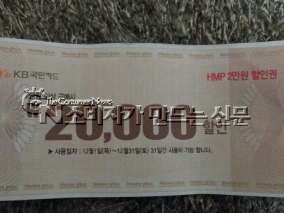 하지만 막상 사은품을 신청하자 홈플러스 측은 사은품이 소진됐다며 2만원 할인권으로 대체 지급했다.