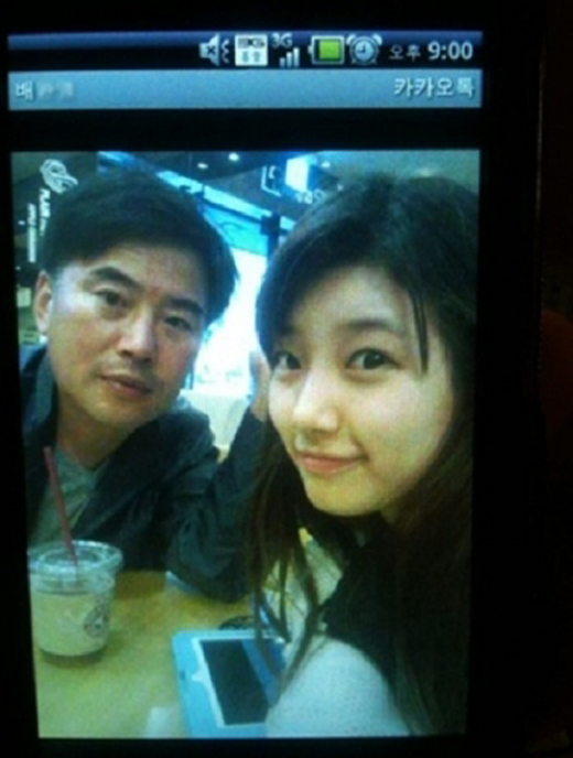 공개된 사진 속에는 수지와 수지 아버지가 커피전문점에 나란히 앉아 다정하게 셀카를 찍고 있다.