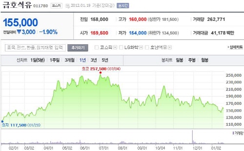 그러나 금호석화 주가가 떨어지면서 10억원에 가까운 손실이 발생했다.
