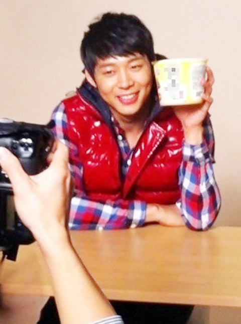 공개된 사진 속 박유천은 컵라면을 얼굴 가까이에 들고 밝은 미소를 짓고 있다.